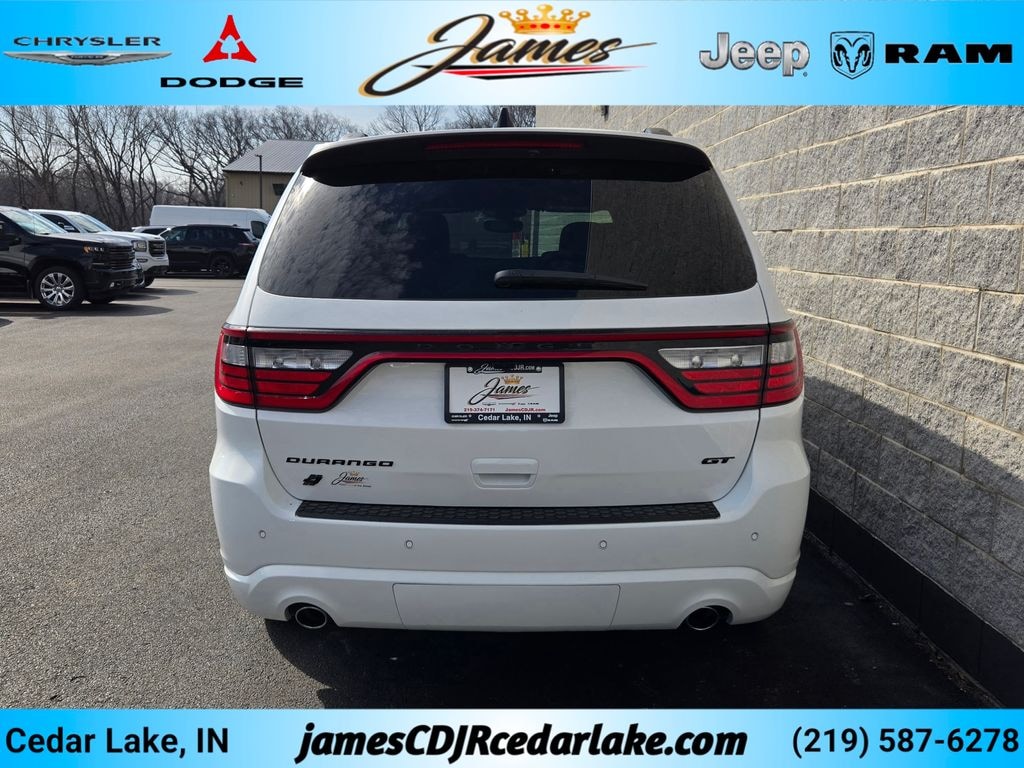 Blacktop Package (Black Roof Rails, Gloss Black Badges, Integrated Roof Rail Crossbars, and Satin Black Dodge Tail Lamp Badge), Quick Order Package 22S GT, Durango GT HEMI V8, 4D Sport Utility, HEMI 5.7L V8 Multi Displacement VVT, 8-Speed Automatic, AWD, White Knuckle Clearcoat, Black Cloth, Auto-dimming Rear-View mirror, Front dual zone A/C, Fully automatic headlights, Heated door mirrors, Passenger vanity mirror, Power door mirrors, Power Liftgate, Rear air conditioning, 3.09 Rear Axle Ratio, 4-Wheel Disc Brakes, ABS brakes, Air Conditioning, AM/FM radio: SiriusXM w/360L, Bumpers: body-color, Compass, Delay-off headlights, Driver door bin, Driver vanity mirror, Dual front impact airbags, Dual front side impact airbags, Front anti-roll bar, Front Bucket Seats, Front Center Armrest w/Storage, Front License Plate Bracket, Illuminated entry, Knee airbag, Low tire pressure warning, MyFlexCare Service Plan, Navigation System, Occupant sensing airbag, Outside temperature display, Overhead airbag, Overhead console, Panic alarm, Passenger door bin, Power steering, Power windows, Radio data system, Rain sensing wipers, Rear anti-roll bar, Rear window defroster, Rear window wiper, Security system, Speed-Sensitive Wipers, Split folding rear seat, Spoiler, Tachometer, Telescoping steering wheel, Tilt steering wheel, Traction control, Trip computer, Variably intermittent wipers, and Voltmeter. Recent Arrival! 2026 Dodge Durango GT HEMI V8 4D Sport Utility HEMI 5.7L V8 Multi Displacement VVT 14/21 City/Highway MPG 8-Speed Automatic AWD