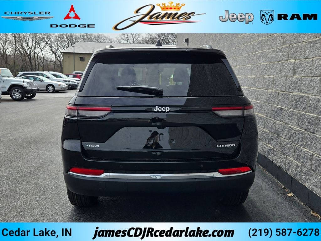 Quick Order Package 22D Laredo, Grand Cherokee Laredo, 4D Sport Utility, 3.6L V6 24V VVT, 8-Speed Automatic, 4WD, Diamond Black Crystal Pearlcoat, Black Cloth, Automatic temperature control, Front dual zone A/C, Radio: Uconnect 5 with 8.4" Display, 3.45 Rear Axle Ratio, 4-Wheel Disc Brakes, 6 Speakers, ABS brakes, Air Conditioning, AM/FM radio: SiriusXM, Auxiliary Battery, Bumpers: body-color, Cloth Seats, Compass, Connectivity - US/Canada, Delay-off headlights, Driver door bin, Driver vanity mirror, Dual front impact airbags, Dual front side impact airbags, Front Center Armrest w/Storage, Front License Plate Bracket, Fully automatic headlights, Gloss Black Exterior Mirrors, Heated door mirrors, Illuminated entry, Integrated Voice Command with Bluetooth, Knee airbag, Low tire pressure warning, Manual Folding Exterior Mirrors, Occupant sensing airbag, Outside temperature display, Overhead airbag, Overhead console, Panic alarm, Passenger door bin, Passenger vanity mirror, Power door mirrors, Power steering, Power windows, Radio data system, Rear window defroster, Rear window wiper, Security system, Speed-Sensitive Wipers, Split folding rear seat, Tachometer, Tilt steering wheel, Traction control, Trip computer, Variably intermittent wipers, Voltmeter, and Wheels: 18" x 8.0" Fully Painted Aluminum 1. Recent Arrival! 2026 Jeep Grand Cherokee Laredo 4D Sport Utility 3.6L V6 24V VVT 19/26 City/Highway MPG 8-Speed Automatic 4WD