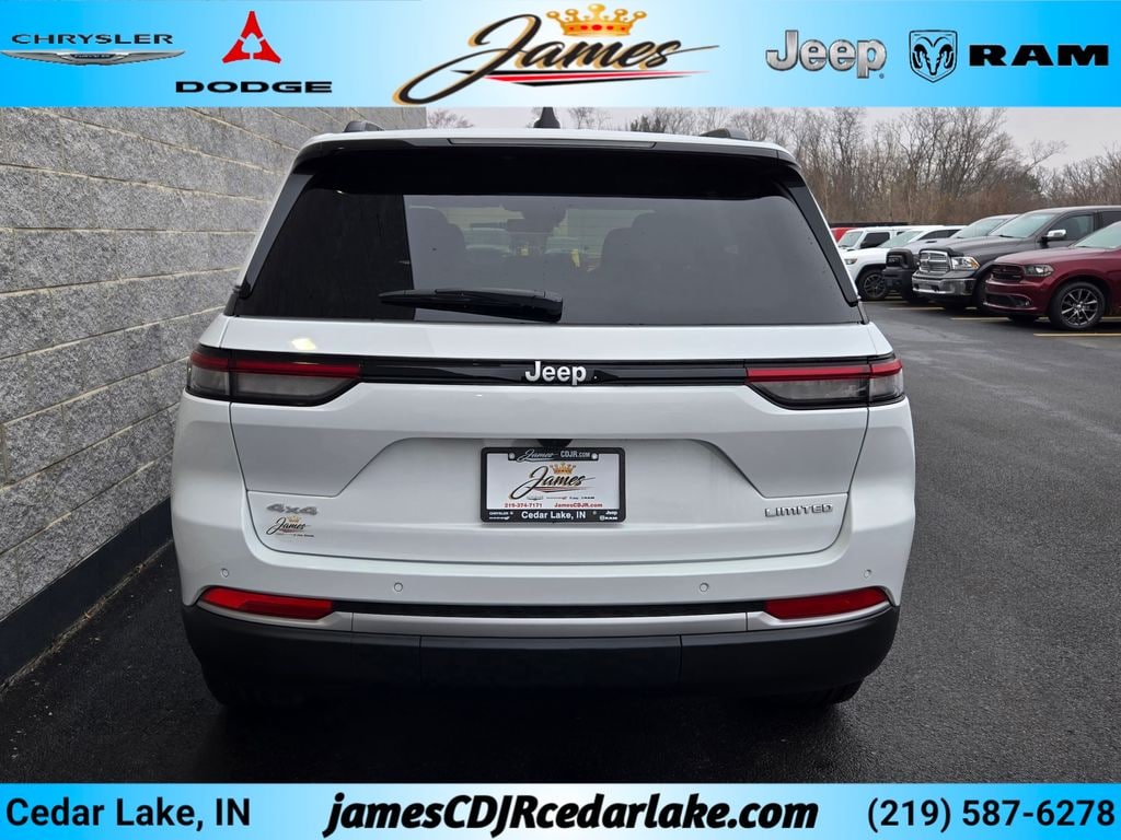 ** Adaptive Cruise Control, ** Apple CarPlay/Android Auto, ** Automatic Emergency Braking, ** 4x4 / Four Wheel Drive /4WD, ** Backup Camera, ** Blind Spot Monitor, ** Brake Assist, ** Cross Traffic Alert, ** Heated Seats, ** Heated Steering Wheel, ** Lane Departure Warning, ** Memory Seat, ** Navigation System, ** Panoramic Roof / Sunroof, ** Power Driver Seat, ** Power Driver and Passenger Seats, ** Remote Start, ** Sunroof / Moonroof, ** Dualâ"Pane Panoramic Sunroof/ Moonroof, ** USB Port, ** Universal Garageâ"Door Opener, ** Selec-Terrain System, ** Memory Heated Mirrors with Turn Signals, Grand Cherokee Limited, 4D Sport Utility, 2.0L I4 PDI Turbocharged DOHC 16V LEV3-SULEV30 324hp, 8-Speed Automatic, 4WD, Bright White Clearcoat, Global Black Artificial Leather, 7 and 4-Pin Wiring Harness, Auto High-beam Headlights, Automatic temperature control, Class IV Receiver Hitch, Front dual zone A/C, Fully automatic headlights, Heated door mirrors, Heated rear seats, ParkSense Front/Rear Park Assist with Stop, Power Liftgate, Quick Order Package 2BE Limited, Radio: Uconnect 5 Nav with 12.3" Display, Rear Load Levelling Suspension, Trailer Hitch Zoom, Trailer Tow Package, Turn signal indicator mirrors.