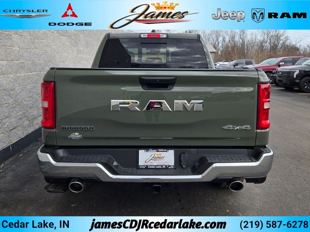 ** Adaptive Cruise Control, ** Alloy Wheels / Premium Wheels, ** Apple CarPlay/Android Auto, ** Automatic Emergency Braking, ** 4x4 / Four Wheel Drive /4WD, ** Backup Camera, ** Blind Spot Monitor, ** Bluetooth, Hands Free, ** Brake Assist, ** Heated Seats, ** Heated Steering Wheel, ** HomeLink, ** Keyless Entry, ** Keyless Start, ** Lane Departure Warning, ** Navigation System, ** Power Driver Seat, ** Power Sliding Rear Window, ** Premium Sound System / Premium Audio, ** Rear Cross Traffic Alert, ** Remote Start, ** Satellite Radio, ** Stability Control, ** Steering Wheel Controls, ** USB Port, ** Universal Garageâ"Door Opener, 1500 Big Horn/Lone Star, 4D Crew Cab, HEMI 5.7L V8 Multi Displacement VVT eTorque, 8-Speed Automatic, 4WD, Canyon Lake, Black Cloth, 115V Auxiliary Power Outlet, 115V Auxiliary Rear Power Outlet, 12" Touchscreen Display, 2nd Row in Floor Storage Bins, 3 Rear Seat Head Restraints, 3.92 Rear Axle Ratio, 4 Way Front Headrests, 400W Inverter, 4G LTE Wi-Fi Hot Spot, 9 Amplified Speakers with Subwoofer, Air Conditioning ATC with Dual Zone Control, Anti-Spin Differential Rear Axle, Apple CarPlay, Auto Power-Folding Mirrors, Auto-Dimming Exterior Driver Mirror, Auto-Dimming Rear-View Mirror, Bed Utility Group, Big Horn Level 2 Equipment Group, Black Exterior Mirrors, Black Premium Power Mirrors, Body Color Fender Flares, Bucket Seats, Center Console Parts Module, Cluster 7.0" TFT Color Display, Configurable Drive Mode, Connected Travel and Traffic Services, Connectivity - US/Canada, Convex Wide-Angle Exterior Mirror Insert, Delay-off headlights, Deluxe Cloth Bucket Seats, Disassociated Touchscreen Display, Exterior 115V AC Outlet, Exterior Mirrors Courtesy Lamps, Exterior Mirrors with Heating Element, Exterior Mirrors with Supplemental Signals, Front fog lights, Front Seat Back Map Pockets, Full Length Floor Console, Fully automatic headlights, Global Telematics Box Module, Glove Box Lamp, Google Android Auto, GPS Antenna Input, GPS Navigation, HD Radio, Heated Front Seats, Heated Steering Wheel, Integrated Center Stack Radio, Integrated Voice Command with Bluetooth, Leather Wrapped Steering Wheel, LED Dome Lamp with on/Off Switch, LED Footwell Lighting, Manual Adjust 4-Way Front Passenger Seat, Media Hub with 2 Charge Only USBs, MOPAR 4 Adjustable Cargo Tie-Down Hooks, MOPAR Front and Rear Rubber Floor Mats, MOPAR Spray in Bedliner, Overhead LED Lamps, Panic alarm, Pick-Up Box Lighting, Power 2-Way Driver Lumbar Adjust, Power Adjust 8-Way Driver Seat, Power Adjustable Pedals, Premium Overhead Console, Quick Order Package 27Z Big Horn, Radio: Uconnect 5 Navigation with 12.0" Display, Rear 60/40 Folding Seat, Rear Center Armrest, Rear Power Sliding Window, Rear Window Defroster, Remote Tailgate Release, Security Alarm, SiriusXM Radio Service, SiriusXM with 360L, Steering Wheel Mounted Audio Controls, Sun Visors with Illuminated Vanity Mirrors, Universal Garage Door Opener, USB Host Flip, Wheels: 20" x 9" Aluminum Chrome Clad.