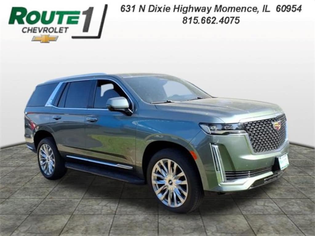 Dark Emerald Metallic 2023 Cadillac Escalade Premium Luxury RWD 10-Speed Automatic 6.2L V8 Black Leather, 16.9 Diagonal OLED Infotainment Screen, 19 Speakers, 2-Presets Memory For Driver Seat Adjuster, 2-Way Driver Power Lumbar Seat Adjuster, 2-Way Front Passenger Power Lumbar Seat Adjuster, 3 Years of OnStar & Connected Services Plan, 3.23 Axle Ratio, 3rd row seats: split-bench, 4-Way Power Driver Lumbar Seat Adjuster, 4-Way Power Front Passenger Lumbar Seat Adjuster, 4-Wheel Disc Brakes, 8-Way Power Driver Seat Adjuster, 8-Way Power Front Passenger Seat Adjuster, ABS brakes, Adaptive Cruise Control, Air Conditioning, AKG Studio 19-Speaker Audio System, Alloy wheels, AM/FM radio: SiriusXM with 360L, Apple CarPlay/Android Auto, Audio memory, Auto High-beam Headlights, Auto tilt-away steering wheel, Auto-dimming door mirrors, Auto-dimming Rear-View mirror, Automatic Seat Belt Tightening, Automatic temperature control, Brake assist, Bumpers: body-color, Compass, Delay-off headlights, Door Lock & Latch Shields, Driver door bin, Driver vanity mirror, Dual front impact airbags, Dual front side impact airbags, Electronic Stability Control, Emergency communication system: OnStar and Cadillac connected services capable, Enhanced Automatic Emergency Braking, Enhanced Automatic Parking Assist, Exterior Parking Camera Rear, Four wheel independent suspension, Front anti-roll bar, Front Bucket Seats, Front Center Armrest w/Storage, Front dual zone A/C, Front License Plate Bracket, Front reading lights, Fully automatic headlights, Garage door transmitter, Glass Breakage Sensor, HD Radio, Heads-Up Display, Heated & Ventilated Driver & Front Passenger Seats, Heated door mirrors, Heated Driver & Front Passenger Seats, Heated front seats, Heated rear seats, Heated steering wheel, Illuminated entry, Lane Change Alert w/Side Blind Zone Alert, Leather Seating Surfaces w/Mini-Chevron Perf Inserts, Low tire pressure warning, Mechanical Limited-Slip Differential, Memory seat, Navigation System, Not Equipped w/2nd Row Express-Up Window Control, Not Equipped w/4-Way Driver & Fr Pass Pwr Lumbar, Not Equipped w/Wheel Locks (LPO), Occupant sensing airbag, Outside temperature display, Overhead airbag, Overhead console, Panic alarm, Passenger door bin, Passenger vanity mirror, Power door mirrors, Power driver seat, Power Liftgate, Power moonroof, Power Panoramic Tilt-Sliding Sunroof, Power passenger seat, Power steering, Power windows, Preferred Equipment Group 1SB, Premium Smooth Ride Suspension, Radio data system, Radio: AM/FM w/Navigation, Rain sensing wipers, Rear air conditioning, Rear anti-roll bar, Rear Camera Mirror, Rear Camera Mirror Washer, Rear Cross Traffic Alert, Rear reading lights, Rear window defroster, Rear window wiper, Reconfigurable Full-Color Head-Up Display, Remote keyless entry, Reverse Automatic Braking, Running Board Assist Steps, Security system, SiriusXM w/360L, Speed control, Split folding rear seat, Spoiler, Steering wheel memory, Steering wheel mounted audio controls, Super Cruise, Tachometer, Teen Driver, Telescoping steering wheel, Theft-Deterrent Alarm System, Tilt steering wheel, Traction control, Trip computer, Turn signal indicator mirrors, Variably intermittent wipers, Vehicle Inclination Sensor, Vehicle Interior Movement Sensor, Ventilated front seats, Voltmeter, Wheel Locks, Wheels: 22 14-Spoke Alloy w/Polished Finish, Wireless Apple CarPlay/Wireless Android Auto.