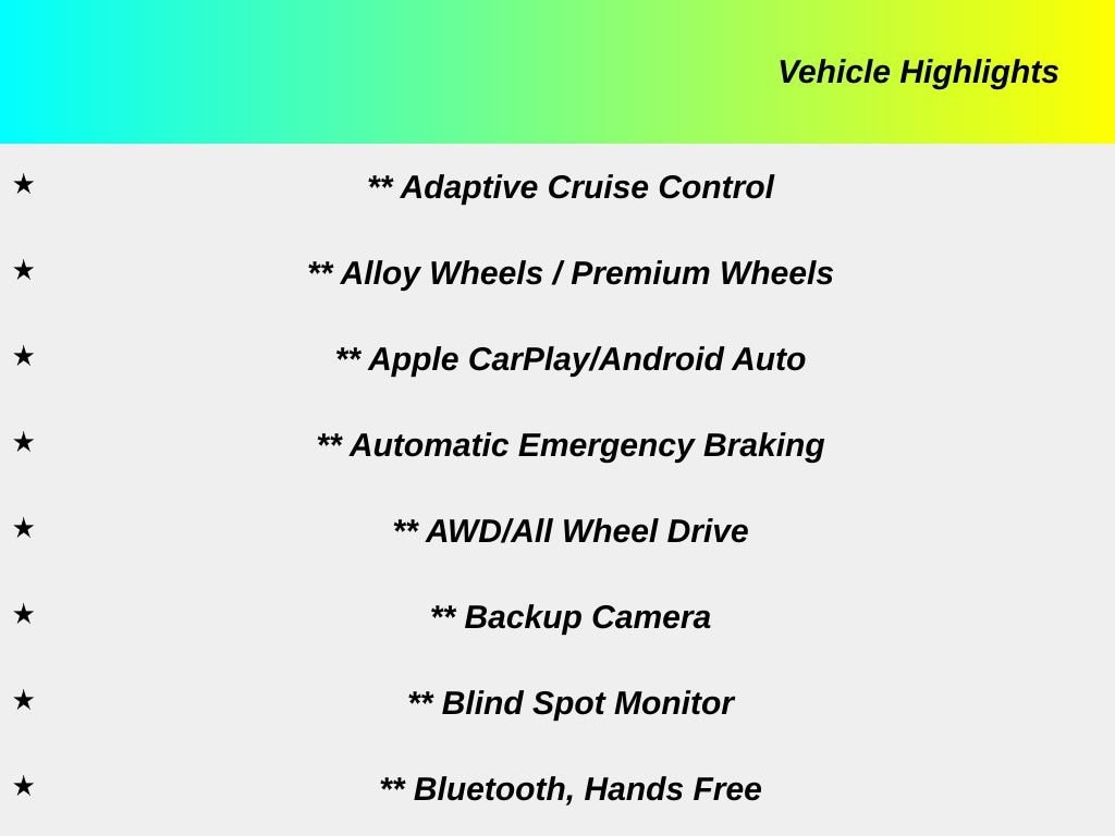 • Adaptive Cruise Control: Adaptive Cruise Control w/Stop