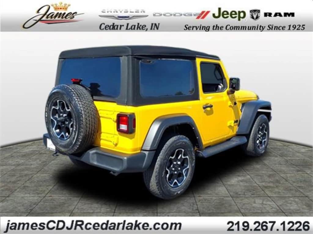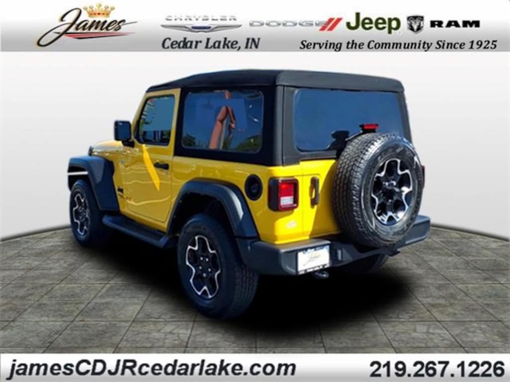 2021 Jeep Wrangler Sport S CLEAN CARFAX, 1 OWNER, APPLE CAR PLAY, ANDROID AUTO, GPS NAVIGATION, REMOTE START, UCONNECT 4 w/ 8.4-INCH TOUCH SCREEN DISPLAY, TOUCH SCREEN DISPLAY, PUSH BUTTON START, KEYLESS ENTRY, HEATED FRONT SEATS, HEATED STEERING WHEEL, 4 WHEEL DRIVE / 4X4 / 4WD, ALPINE STEREO SYSTEM, TOW HOOKS, BLUTOOTH, USB PORTS, UNIVERSAL GARAGE DOOR OPENER, PREMIUM ALUMINUM WHEELS, STEERING WHEEL W/ AUDIO CONTROLS, INTEGRATED VOICE COMMAND W/ BLUETOOTH, DEEP TINT SUNSCREEN (PRIVACY) GLASS, ALL MECHANICAL REPAIRS AND MAINTENANCE HAS BEEN PERFORMED AND IS READY FOR IMMEDIATE DELIVERY!, GPS/NAV/NAVI, SUNRIDER SOFT TOP, HELLAYELLA CLEARCOAT (YELLOW), 4WD/4X4/FOUR WHEEL DRIVE, Get ready to turn every drive into an adventure with this 2021 Jeep Wrangler Sport S 2-Door with the 22S Package. Few vehicles are as iconic and instantly recognizable as the Wrangler, and this model brings that legendary Jeep spirit with modern comfort, safety, and efficiency. The 22S Package enhances the Sport S with premium touches like upgraded wheels, power windows and locks, air conditioning, and advanced infotainment featuresmaking it the perfect blend of rugged utility and everyday convenience. From the moment you see its bold stance and classic Jeep grille, youll know this Wrangler was built to stand out both on and off the road. Under the hood, youll find Jeeps dependable 2.0L turbo engine paired with a smooth-shifting automatic transmission, delivering the right balance of strength and efficiency. With up to 25 highway MPG, this Wrangler makes long scenic drives just as enjoyable as tackling rocky trails. Its shorter wheelbase gives it outstanding maneuverability, and with nearly 10 inches of ground clearance, its ready to crawl over obstacles most vehicles wouldnt dare approach., Wrangler Sport S, 2D Sport Utility, 2.0L I4 DOHC, 8-Speed Automatic, 4WD, Hellayella Clearcoat, Black Cloth, 1-Yr SiriusXM Guardian Trial, 110 mph Vehicle Max Speed Calibration, 220 Amp Alternator, 3.45 Rear Axle Ratio, 4-Wheel Disc Brakes, 4G LTE Wi-Fi Hot Spot, 5-Year SiriusXM Traffic Service, 5-Year SiriusXM Travel Link Service, 7.0" Touchscreen Display, 8 Speakers, 8.4" Radio & Premium Audio Group, 8.4" Touchscreen Display, ABS brakes, Air Conditioning, Air Conditioning w/Auto Temperature Control, Air Filtering, Alpine Premium Audio System, AM/FM radio, Anti-Spin Differential Rear Axle, Apple CarPlay, Auto-Dimming Rear-View Mirror, Automatic Headlamps, Brake assist, Cloth Low-Back Bucket Seats, Cluster 7.0" TFT Color Display, Cold Weather Group, Compass, Convenience Group, Deep Tint Sunscreen Windows, Delay-off headlights, Driver door bin, Driver vanity mirror, Dual front impact airbags, Dual front side impact airbags, Electronic Stability Control, Emergency/Assistance Call, For Details, Visit DriveUconnect.com, For More Info Call 800-643-2112, Front 1-Touch Down Power Windows, Front anti-roll bar, Front Bucket Seats, Front Center Armrest w/Storage, Front fog lights, Front reading lights, Google Android Auto, GPS Antenna Input, GPS Navigation, HD Radio, Heated Front Seats, Heated Steering Wheel, Integrated Center Stack Radio, Integrated roll-over protection, Leather Wrapped Steering Wheel, Low tire pressure warning, MOPAR Satin Black Grille, Navigation System, Occupant sensing airbag, Off-Road Info Pages, Outside temperature display, ParkView Rear Back-Up Camera, Passenger door bin, Passenger vanity mirror, Power Heated Mirrors, Premium Black Sunrider Soft Top, Quick Order Package 22S Sport S, R1234YF A/C Refrigerant, Radio: Uconnect 4C Nav w/8.4" Display, Rear anti-roll bar, Rear reading lights, Remote Keyless Entry, Security Alarm, Side Steps, SiriusXM Radio Service, SiriusXM Satellite Radio, SiriusXM Traffic Plus, SiriusXM Travel Link, Speed control, Speed Sensitive Power Locks, Sport S, Steering wheel mounted audio controls, Sun Visors w/Illuminated Vanity Mirrors, Tachometer, Technology Group, Telescoping steering wheel, Tilt steering wheel, Traction control